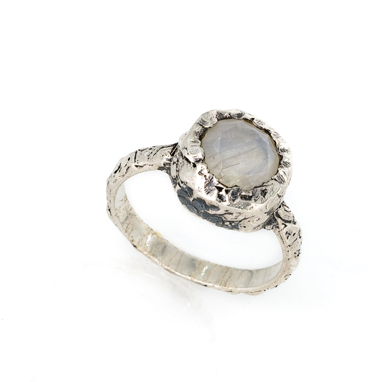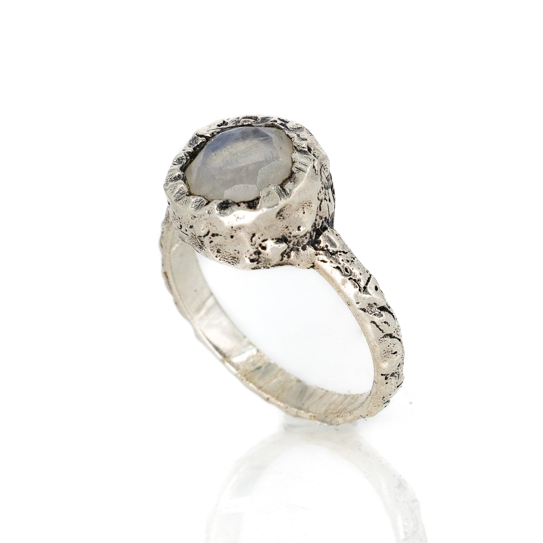 טבעת עלמה עשויה כסף אמיתי בעלת טקסטורה גולמית וייחודית