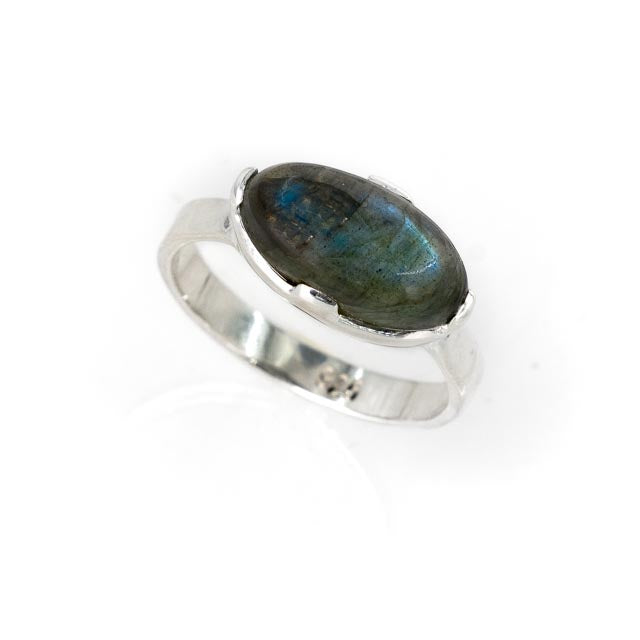 טבעת לארה -אבן לברדורייט כחולה מלבנית