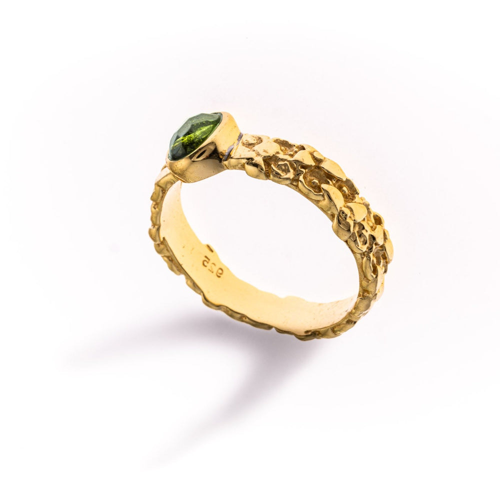 טבעת איזבל ציפוי זהב - אבן טורמלין ירוקה