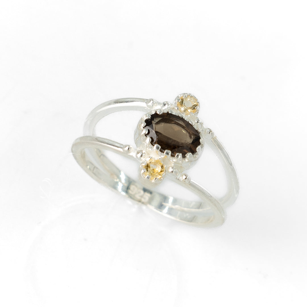 טבעת סול- אבן סמוקי קוורץ וסיטרין
