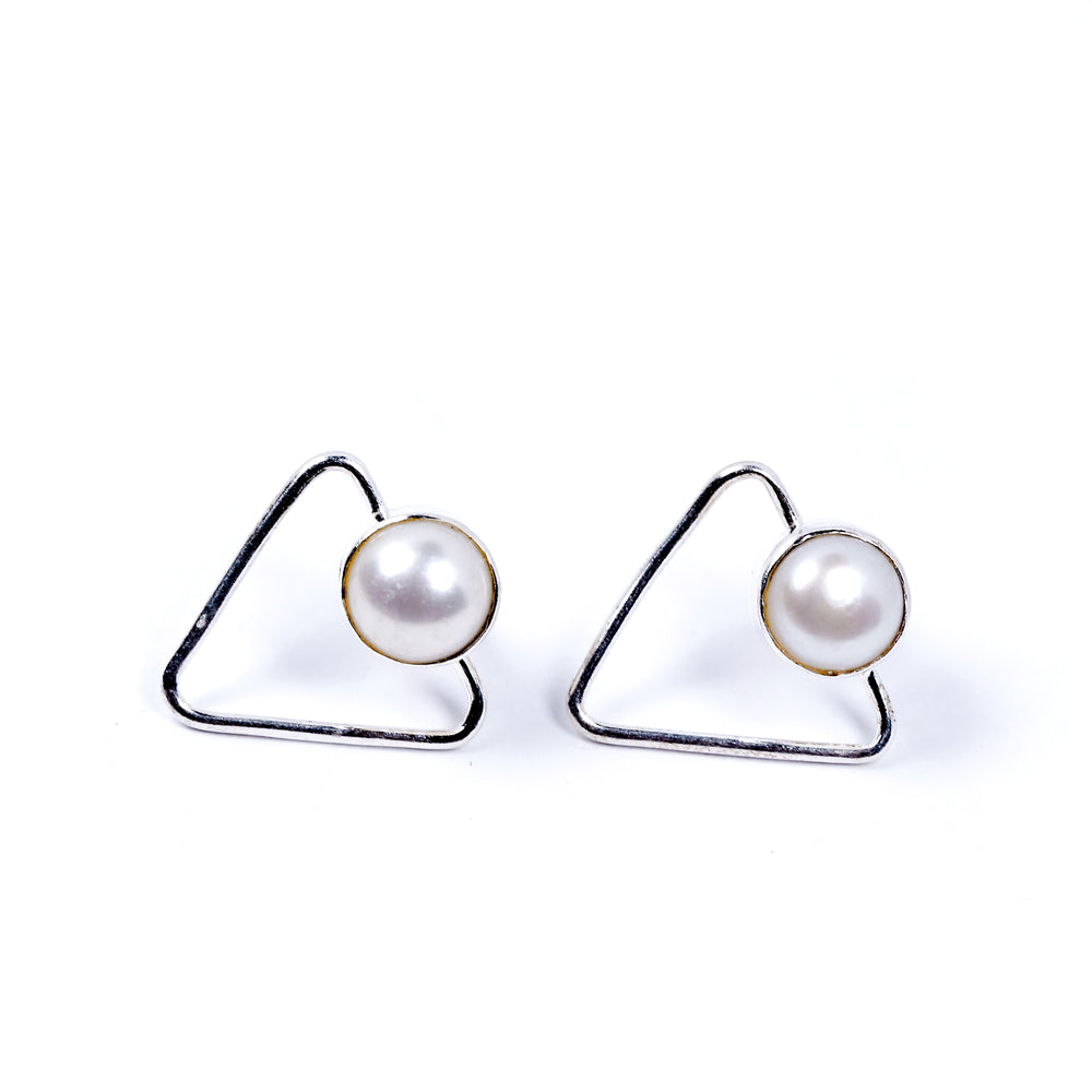עגילים משולש צמודים בשילוב פנינים טבעיות