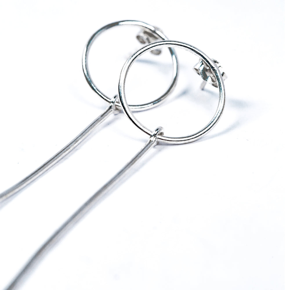 עגילי עגולים צמודים משולבים קו נופל נעשו בעבודת-יד מכסף אמיתי 925