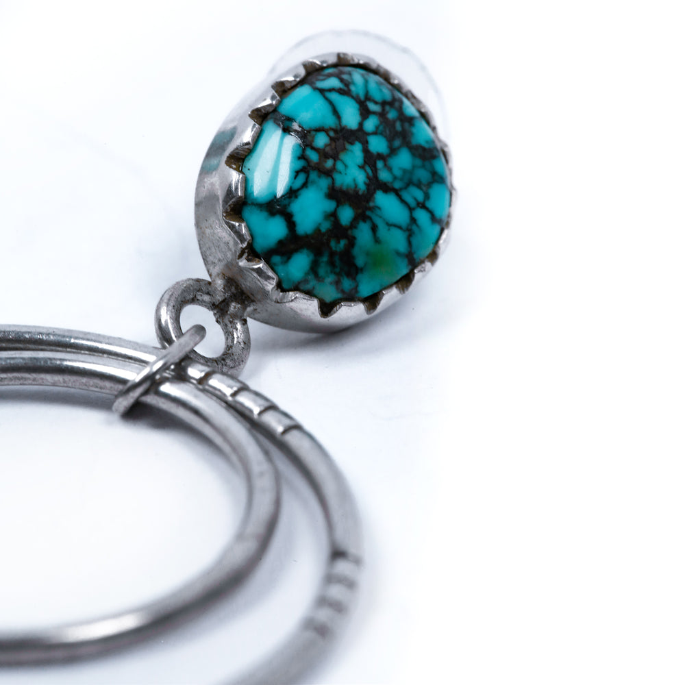 עגילי טורכיז צמודים בשילוב דאבל חישוקים נעשו מכסף אמיתי 925 בעבודת-יד